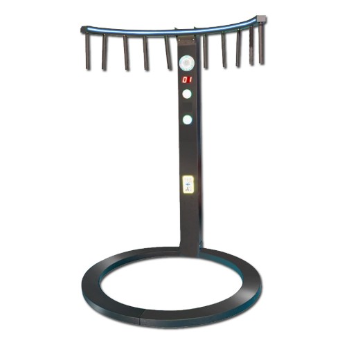 Ten batons hang suspended above you — held in place by the magic of magnets. Once the countdown begins, they drop one by one in rapid succession. Your goal? Catch as many as you can before they hit the ground.